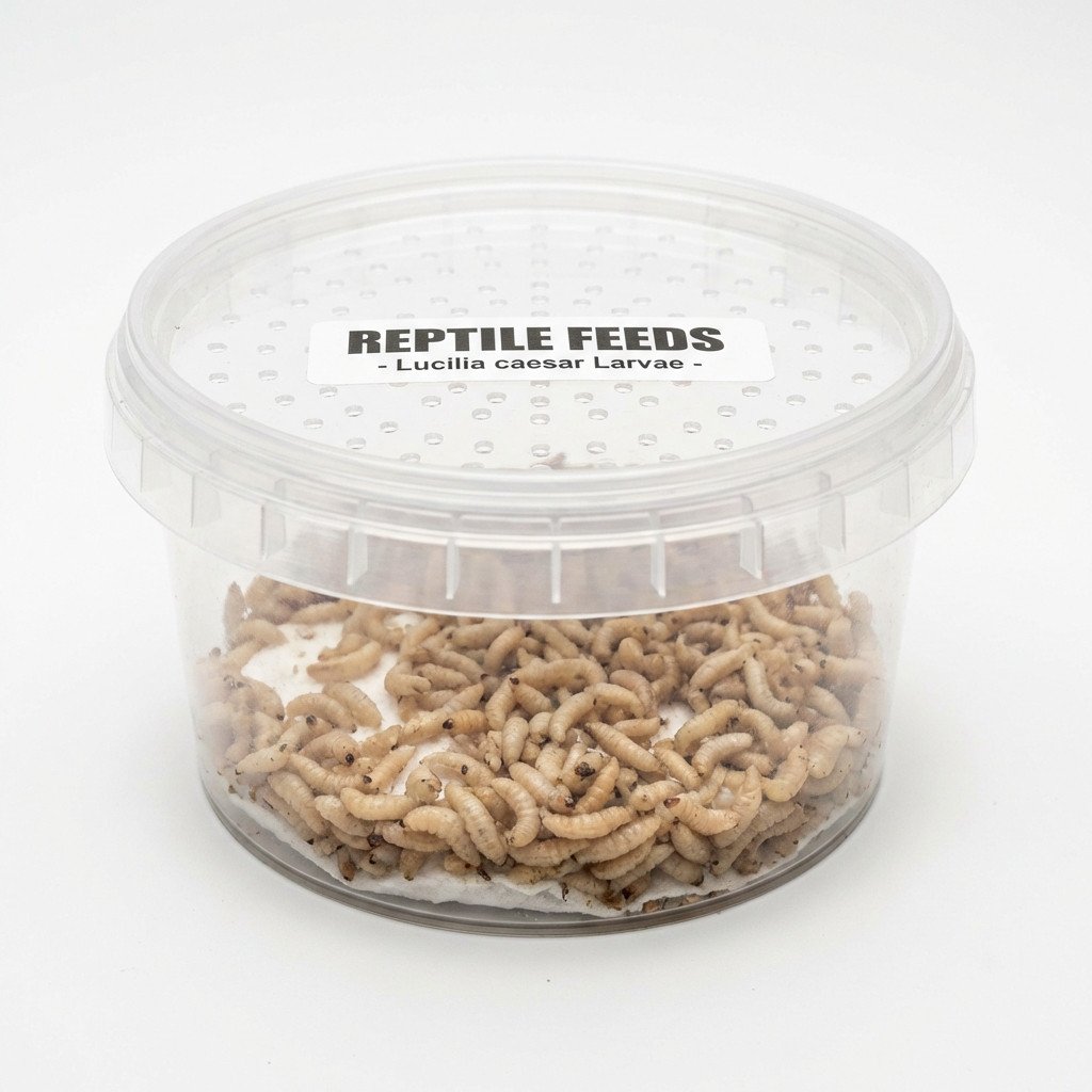 Live greenbottle larvae (Lucilia caesar). Available in pinky and 18g sizes.