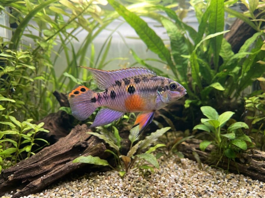 I recently added the Pelvicachromis subocellatus ‘Matadi Violet’ to my community tank, and I couldn’t be more thrilled! These stunning cichlids are not only vibrant with their lovely violet hues, but they’ve also exhibited such exciting behavior in just a couple of weeks. Watching them explore the intricacies of the aquarium substrate has been a joy!