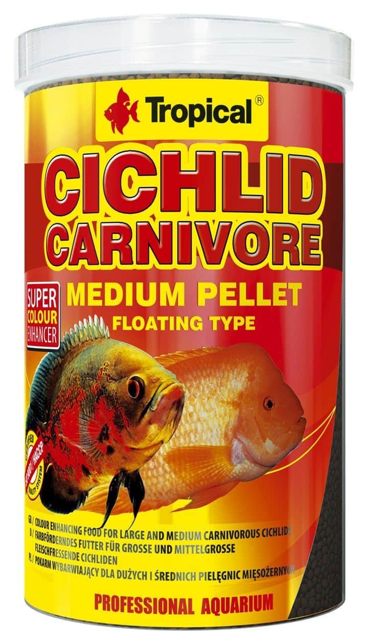 Tropical Cichlid Carnivore Medium Pellet is a premium floating food for medium and large carnivorous cichlids. Enriched with astaxanthin and zeolite for vibrant colours and clean water.