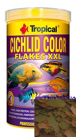 Tropical Cichlid Color Flakes – 11l / 2kg is a premium cichlid food from Tropical, formulated to meet the specific dietary needs of cichlid species from Africa and South America.