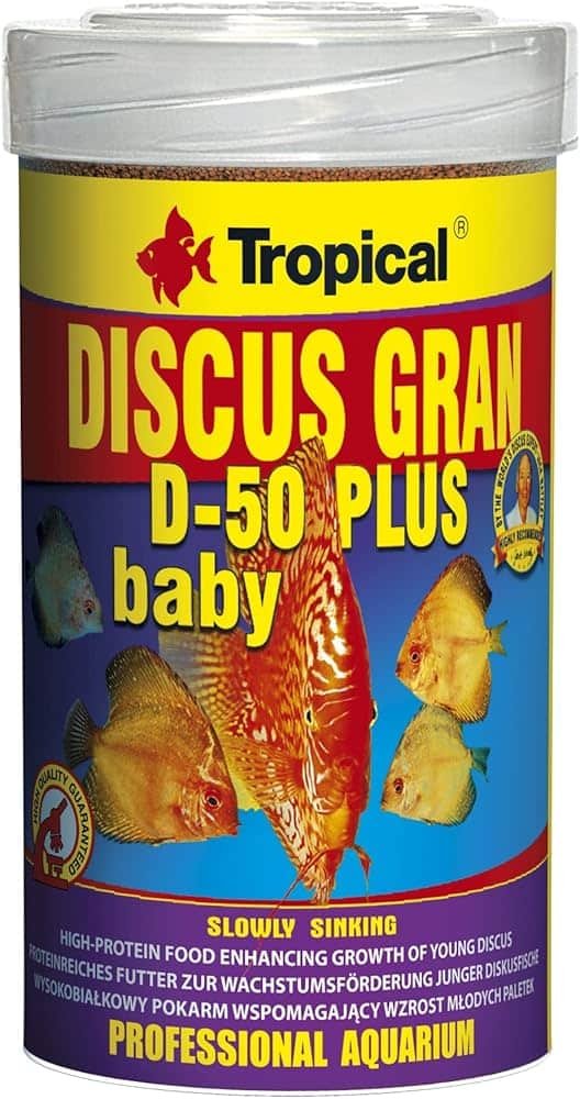 Tropical Discus Gran D-50 Plus Baby is specially formulated mini granule food for juvenile discus. 50% protein content ensures rapid, healthy growth and early colour development.