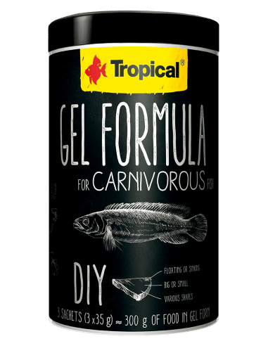 Innovative gel-based food for carnivorous fish species. Simply mix with warm water to create a natural gel food rich in animal proteins. Ideal for predatory and meat-eating tropical fish. 1000ml/105g. By Tropical.