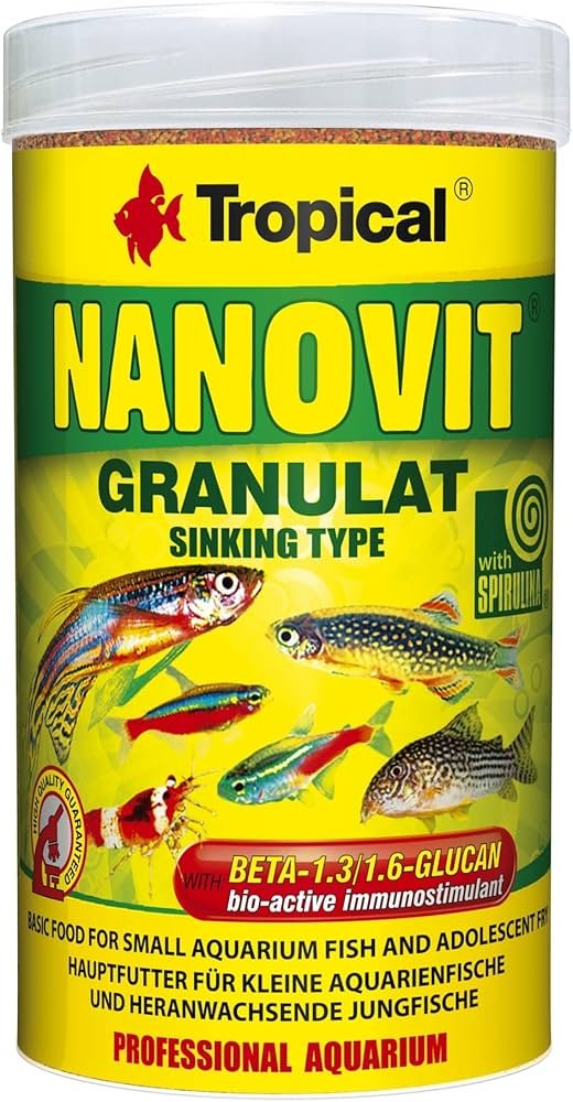 Multi-ingredient slowly sinking granulated food for everyday feeding of community tropical fish. Balanced formula with high-quality proteins, vitamins, and minerals. 100ml/50g. By Tropical.