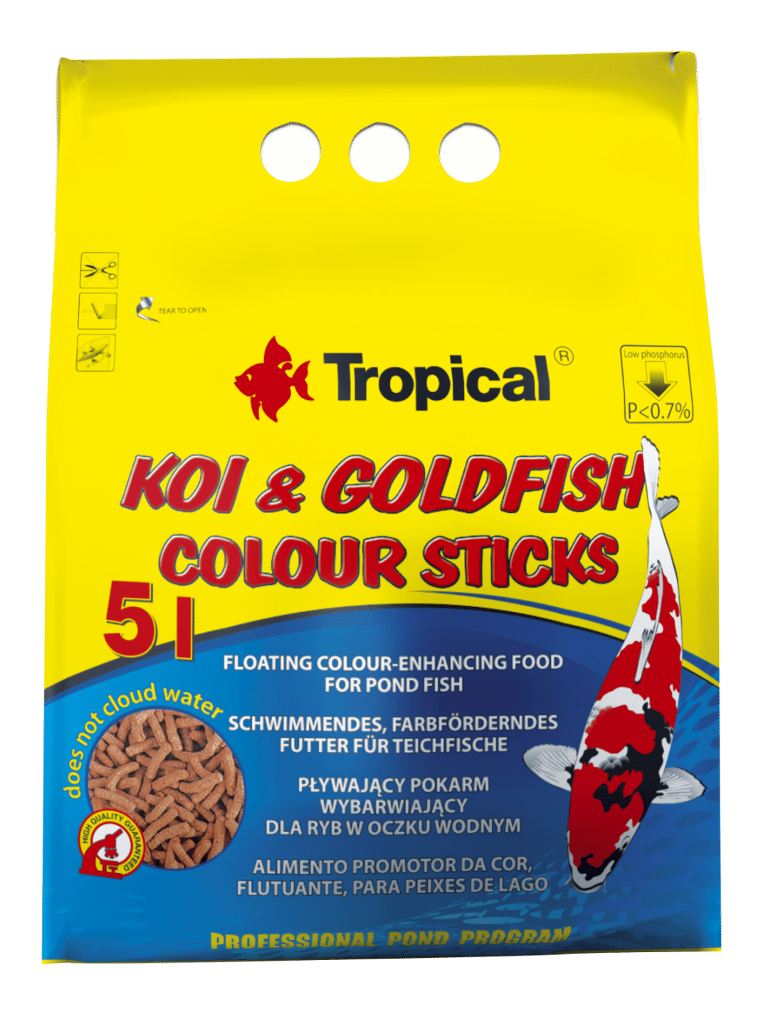 Tropical Koi & Goldfish Colour Sticks — colour-enhancing floating sticks with astaxanthin for koi and goldfish. Intensifies natural reds, oranges and yellows.