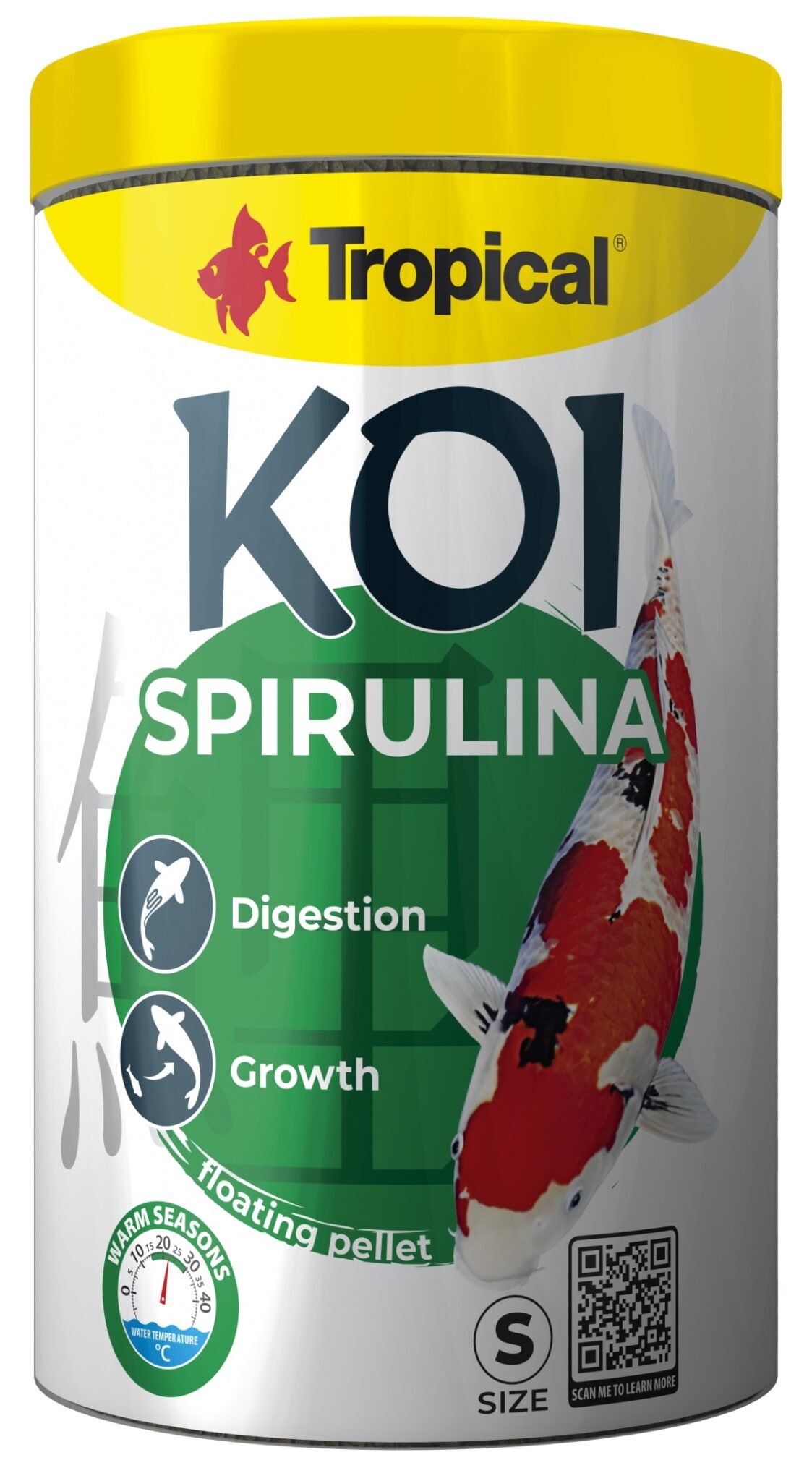Tropical Koi Spirulina Pellet – size S – 1000ml / 320g is a premium quality koi food from Tropical, one of Europe’s most trusted aquatic nutrition brands. Specially formulated to support the health, growth, and vibrant colouration of koi carp.