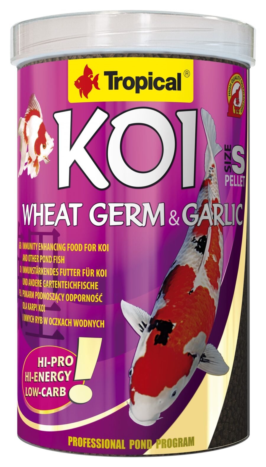 Tropical Koi Wheat Germ&Garlic Pellet “S” – 5l / 1,5 kg – bag is a premium quality koi food from Tropical, one of Europe’s most trusted aquatic nutrition brands. Specially formulated to support the health, growth, and vibrant colouration of koi carp.