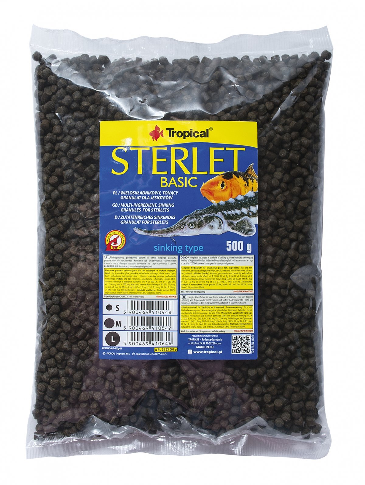 Tropical Sterlet Basic – L – 3L/1,5kg is a complete sinking food from Tropical, specially developed for sterlets and other sturgeon species. The sinking pellets suit the bottom-feeding nature of these ancient fish.