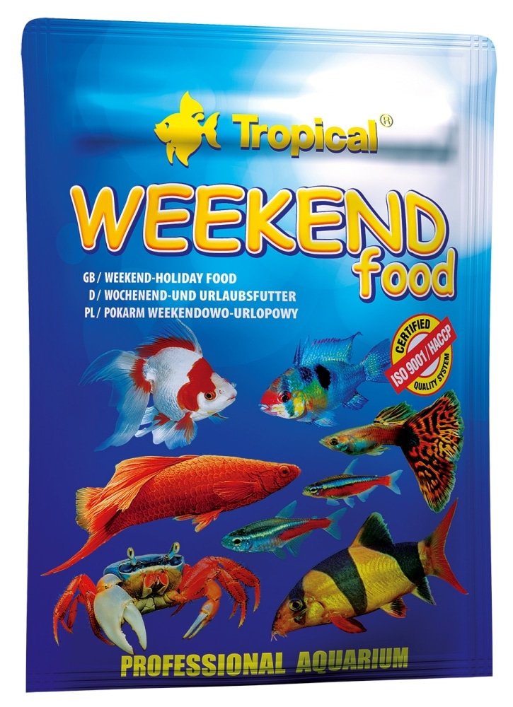 Tropical Weekend Food is a convenient slow-release feeding block designed to nourish your aquarium fish for up to 4 days while you are away. Each 20g block gradually dissolves, providing essential nutrients to freshwater tropical fish without clouding the water. Ideal for short holidays and weekend trips – simply drop a block into your tank before you leave.